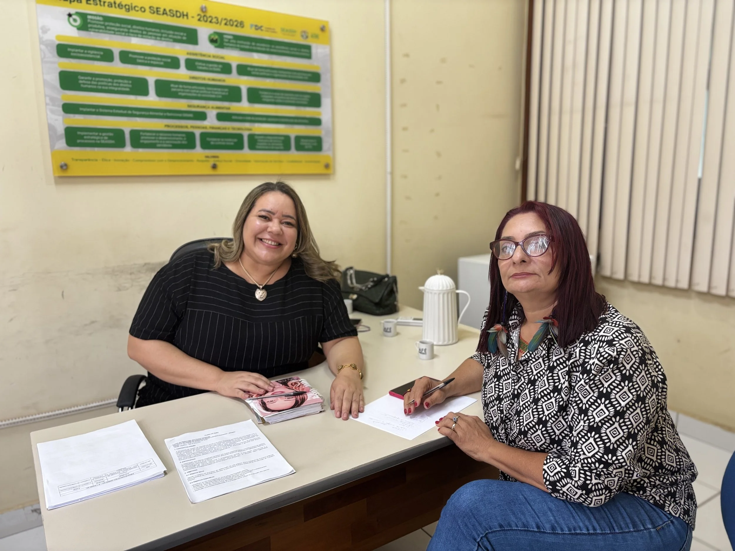 Joelma Pontes e Maria da Luz fazem parte da SEASDH, secretaria que leva o projeto da Comissão à frente. Foto: Victor Manoel/Comitê Chico Mendes