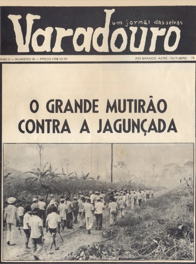 Ele está explicando o que era o Jornal O Varadouro. Criado durante a ditadura militar no Acre e com a missão de ser “um dever de consciência de quem acredita no papel do jornalista. É, propositadamente, feito aqui, na ‘terra’. Sai, portanto, de uma forma rude, cabocla, sem técnica, cheio de limitações e gerado pela necessidade de colocar em discussão os problemas de nossa região, do nosso tempo e principalmente de nossa gente.”